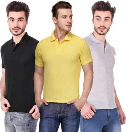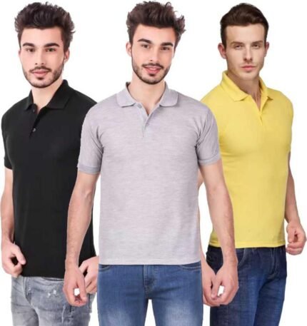 Men’s Polo Neck Short Sleeve Casual Tshirt Combo of Black, Grey, Yellow colors (Pack of 3)