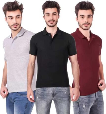 Men’s Polo Neck Half Sleeve Casual Tshirt Combo of Maroon, Black, Grey colors (Pack of 3)