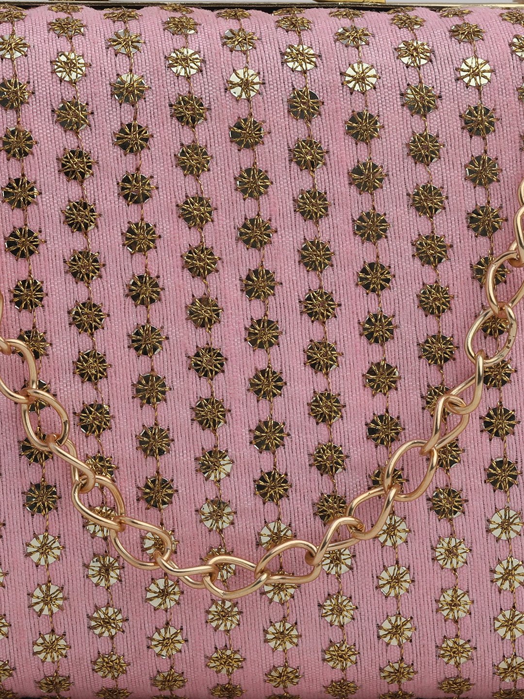 Combo Of Boho Bag And ‘s Pink & Gold Embroidered Box Clutches For Girls and womens