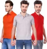 Men’s Polo Neck Short Sleeve Casual Tshirt Combo of Red, Orange, Grey colors (Pack of 3)