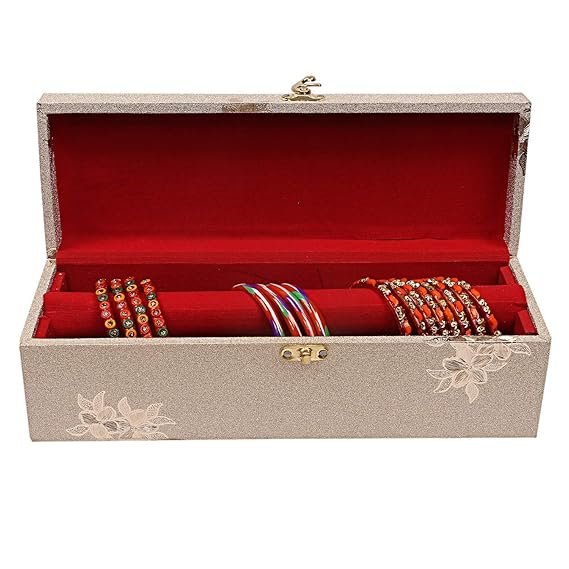 Velvet Bangle Box for Women Jewellery Storage Organizer with Compartments | Bridal Bangle Case for Wedding & Travel | Traditional Indian Bangle Holder Box(single rod )